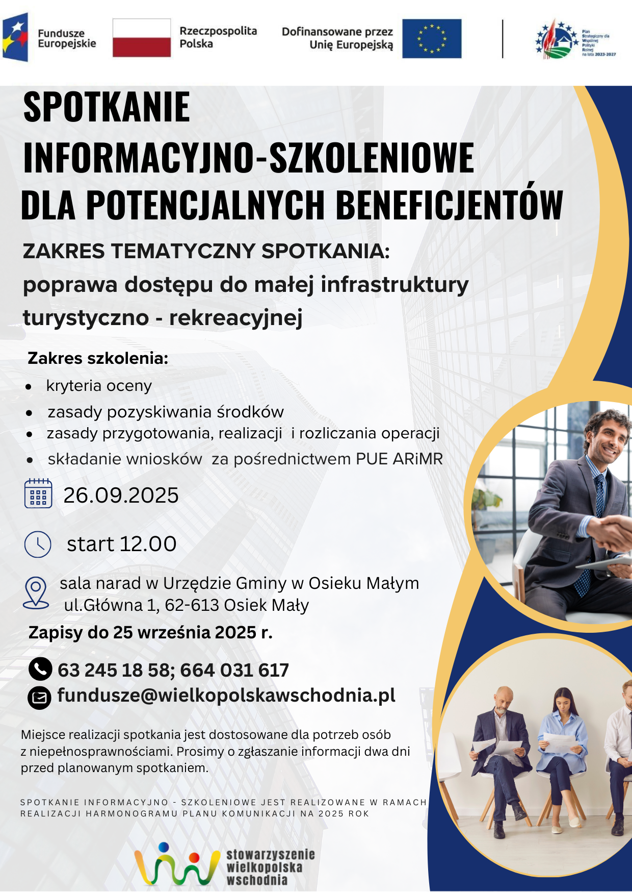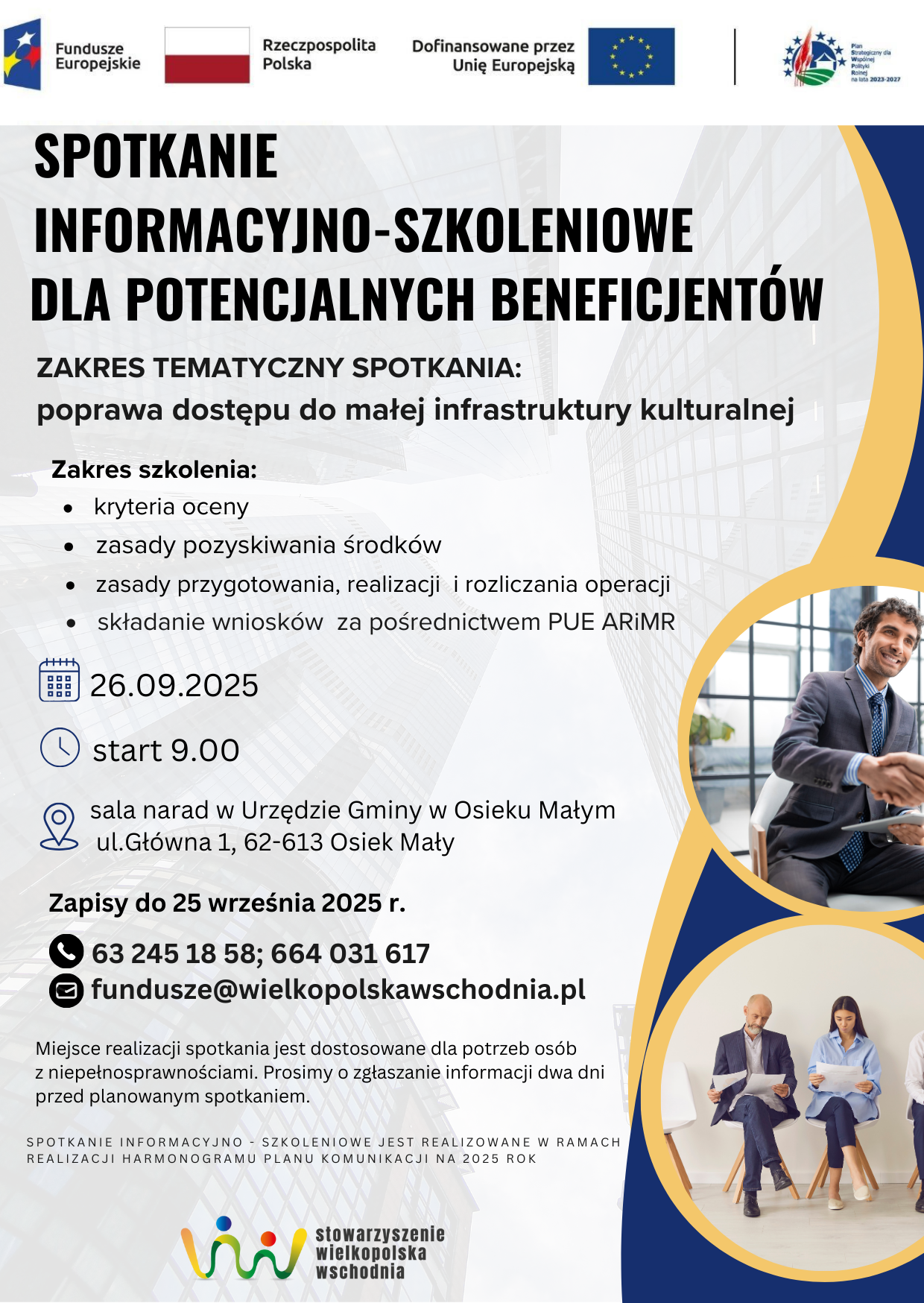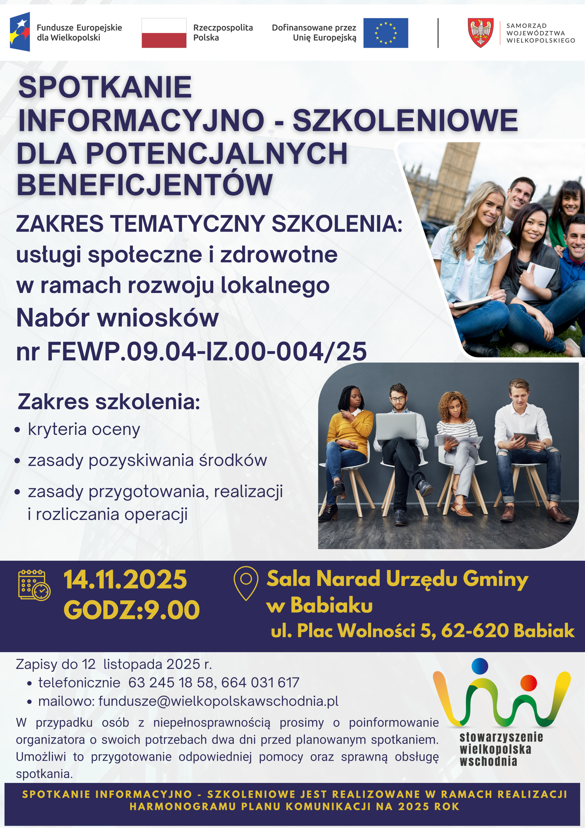 Spotkanie informacyjno - szkoleniowe realizowane jest w ramach realizacji Harmonogramu Planu Komunikacji na rok 2025. Szczegóły na plakacie.