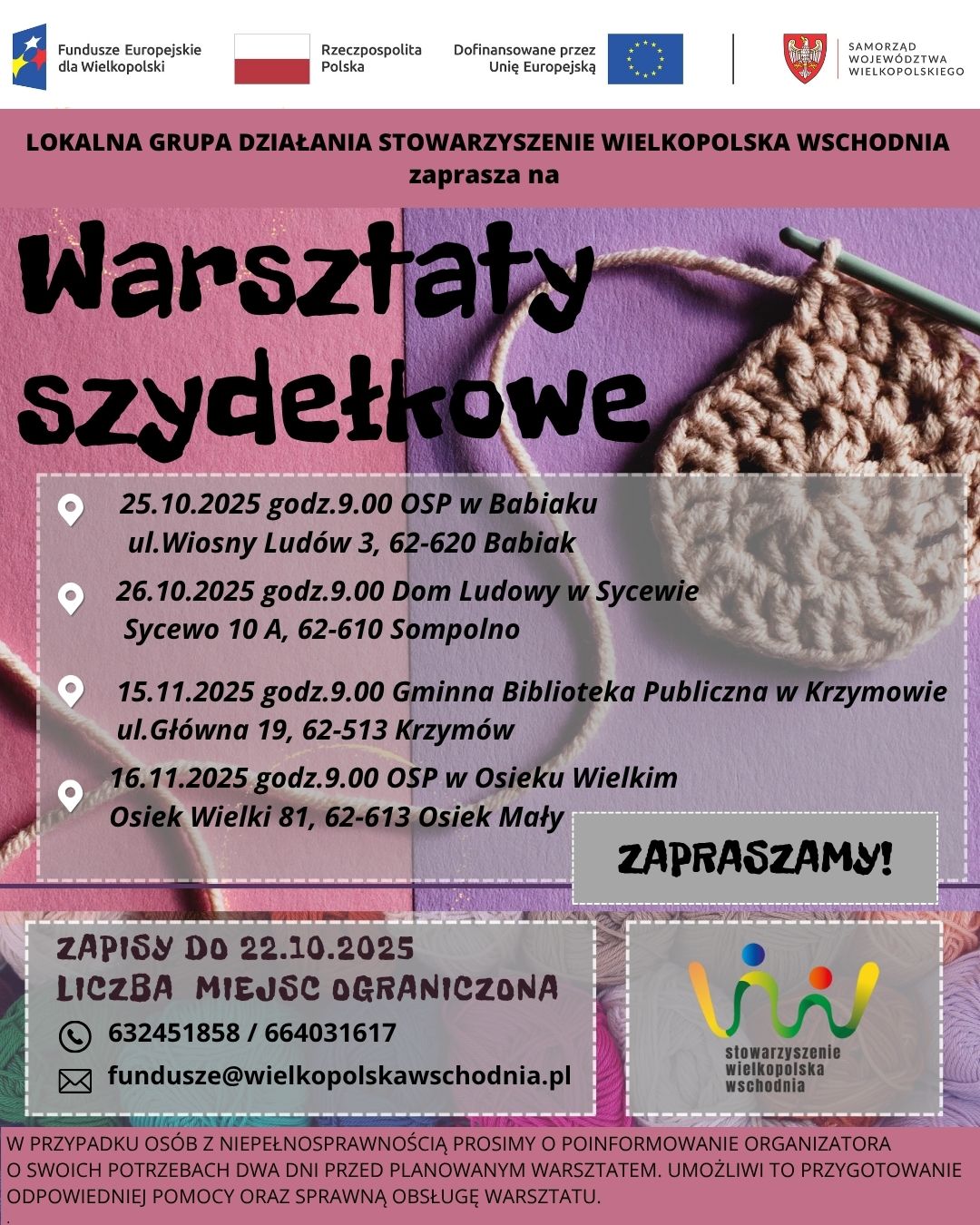 Stowarzyszenie „Wielkopolska Wschodnia” serdecznie zaprasza na warsztaty szydełkowe! Szczegóły wydarzenia znajdują się na załączonym plakacie.
