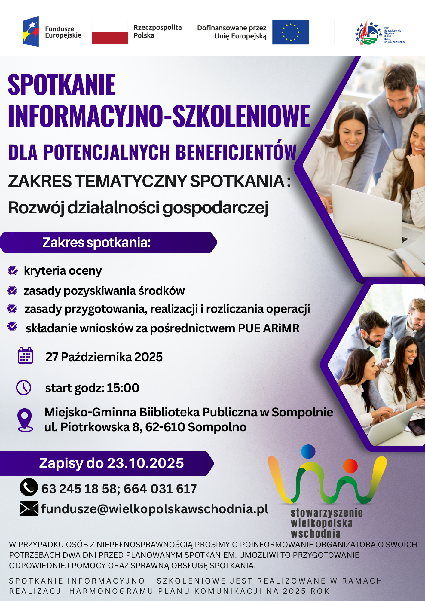 Spotkanie informacyjno - szkoleniowe realizowane jest w ramach realizacji Harmonogramu Planu Komunikacji na rok 2025. Szczegóły na plakacie.